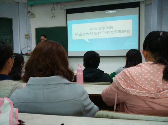 为认真做好2019年定向推荐选聘毕业生到村任职工作,引导和鼓励优秀毕业生投身新农村建设,3月7日中午,管理学院在3B-303举办了大学生村官选聘动员会,学院毕业班辅导员、部分学生干部和部分毕业生党员参加了此次动员会。会上,任浩老师讲解了《2019年全省定向推荐选聘高校毕业生到村任职公告》等相关文件,就大学生村官选聘条件、选聘原则和选聘步骤以及政策待遇和发展出路等方面向同学们进行一一宣讲。他指出,国家对大学生村官选聘工作高度重视,目的是为了壮大社会主义新农村建设骨干人才队伍,对于毕业生来说,机会难得。