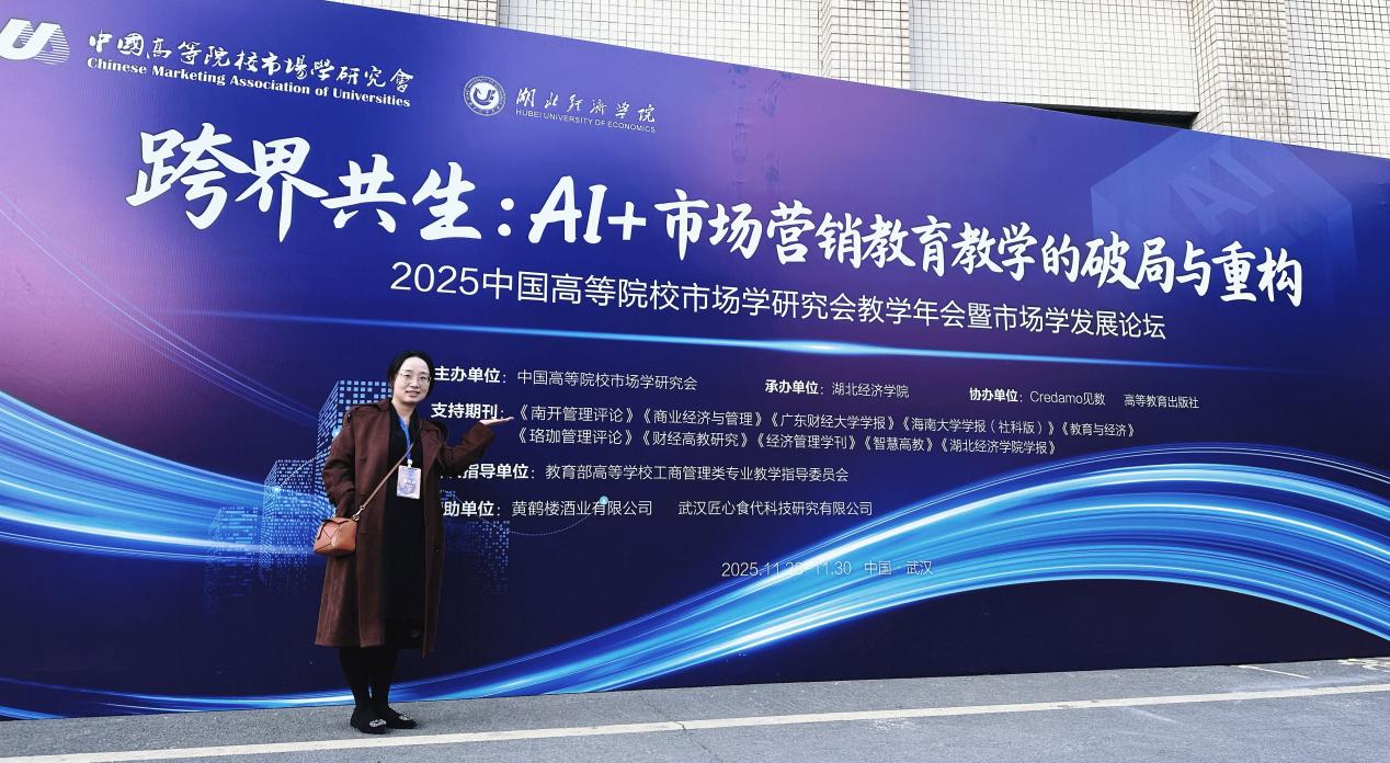 2025年11月29-30日,我院工商管理系刘丹萍副教授参加“2025年中国高等院校市场学研究会教学年会暨市场学发展论坛”,与来自全国160多所高校和科研单位的近300名市场营销专业负责人、骨干教师及行业专家齐聚一堂,围绕“跨界共生:AI+市场营销教育教学的破局与重构”主题,共同探讨人工智能时代市场营销教育教学改革与学科发展的新路径,分享教学经验,推动全国市场营销专业建设与人才培养质量持续提升。