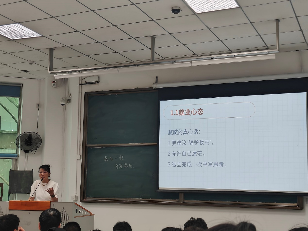 朱老师首先系统讲解了毕业预审、课程替换和学分清算等关键事项,帮助毕业生们理清学业完成情况。此外,面对当前就业市场的复杂形势,朱老师在帮扶会上特别强调了心态调整的重要性。她鼓励毕业生们“在完成学业的基础上,先就业再择业,在迷茫中探索前行”。会议设置了专门的现场答疑环节,朱老师针对毕业生们提出的具体问题进行了逐一解答。这些问题涵盖了学分替换、实习认定、毕业论文时间安排等多个方面。