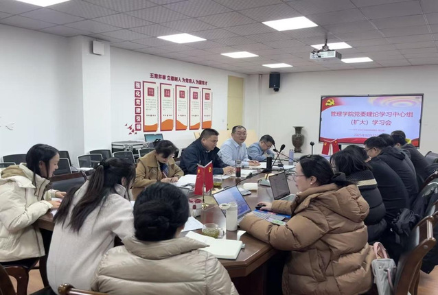 12月22日上午,管理学院党委于3E—402召开党委理论学习中心组学习(扩大)会。学院党委班子成员、党支部书记、三办主任、系主任和副系主任共同参加了此次会议。会议传达学习了学校全面从严治党暨政治生态研判专题会精神,并深入学习了《习近平谈治国理政第五卷》的相关内容。