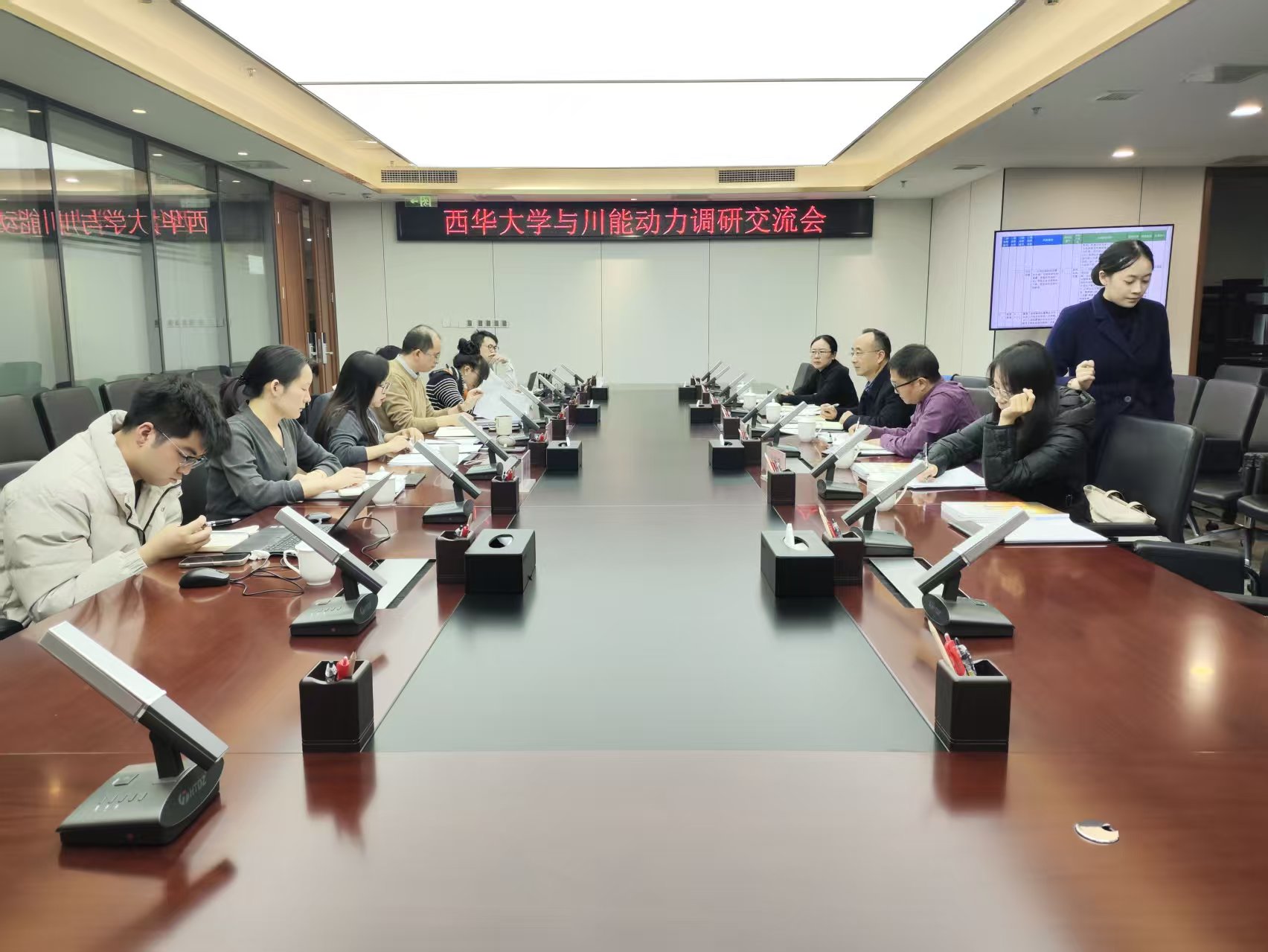 川能动力党委委员、董事会秘书欧健成,合规风控部部长葛闻琳,财务资产部副部长陈维,合规风控部副部长周尚侃等出席座谈会并热情接待。会上,欧健成全面介绍了川能动力的发展历程、新能源核心业务布局及战略发展规划;陈维结合岗位实际,详细阐述了公司在财务管控、成本核算、投融资管理等领域的人才需求,以及科研合作方面的具体诉求。