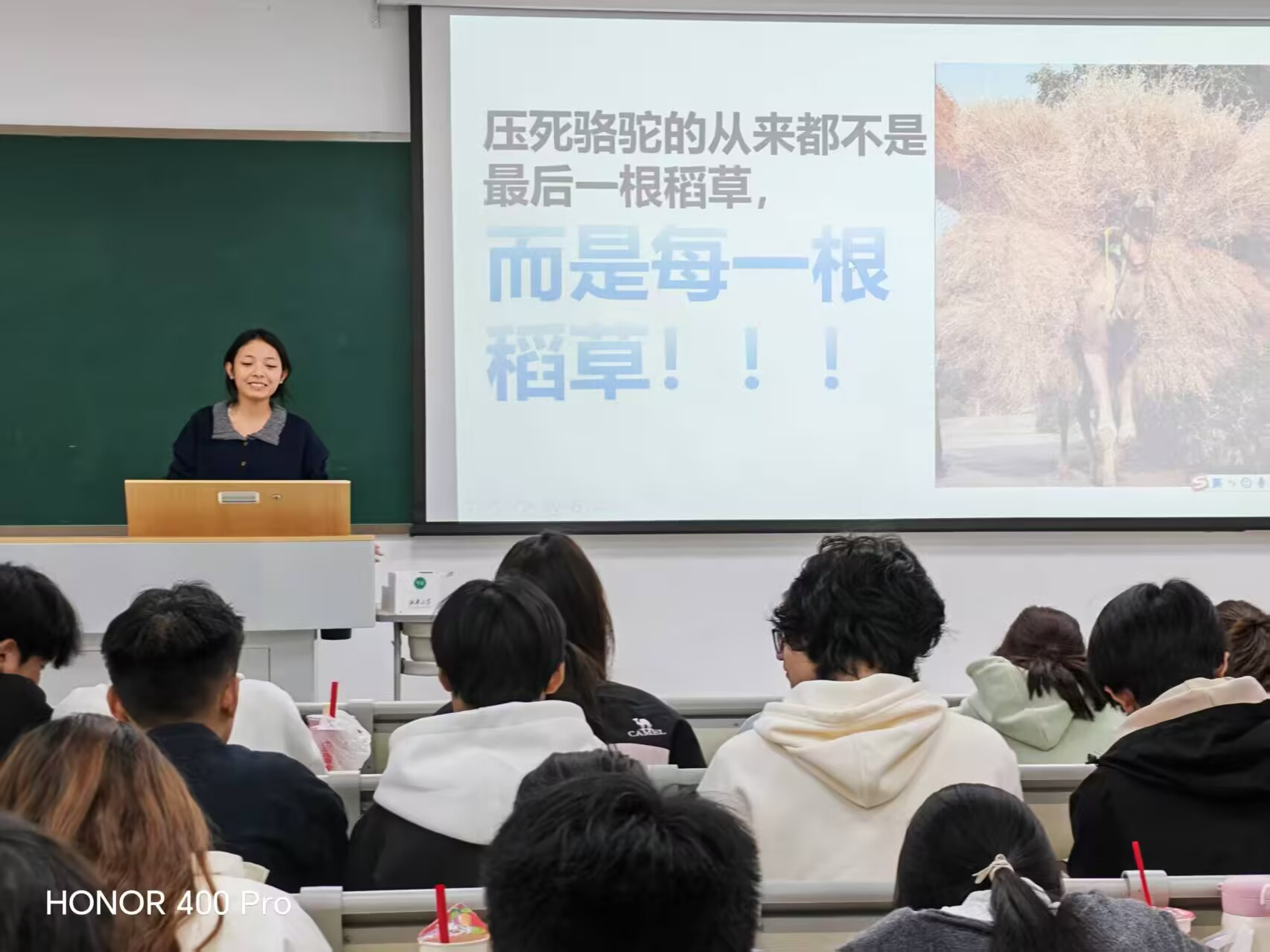 本次活动紧扣学生成长需求,聚焦学业压力、情绪调节、人际沟通等核心议题,形式多样、内容丰富。活动期间,权益部组织各班级心理委员,先后开展“压力解码”心理沙龙、“正念减压”工作坊、“心灵树洞”书信交换等多元活动。心理委员化身“成长引路人”,通过案例分析、互动体验、团体辅导等形式,引导班级同学正确认识情绪、科学调节压力,帮助大家在互动中释放心理负担,在交流中收获心灵力量。